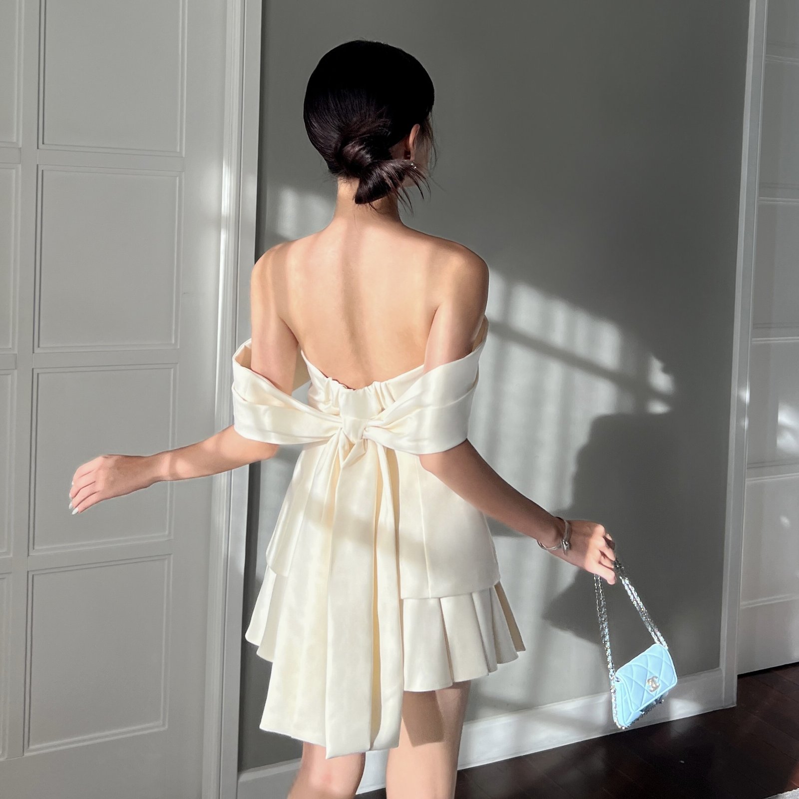 Dottie Top Dottie Skirt Material: Cotton with silk liningThe A-line skirt features lace panel detailing, pleats on both sides of the hips, and built-in inner shorts for added comfort and coverage.