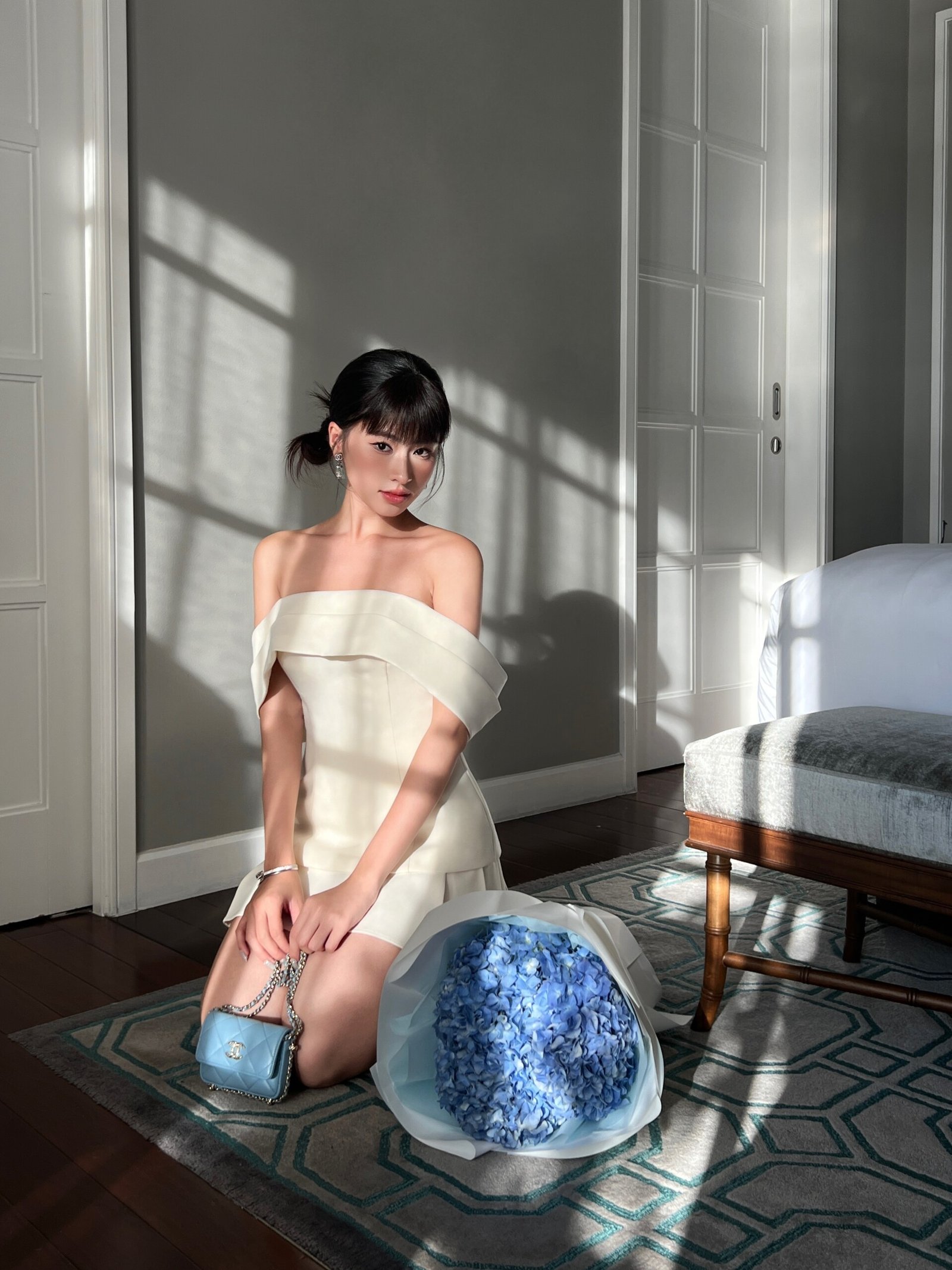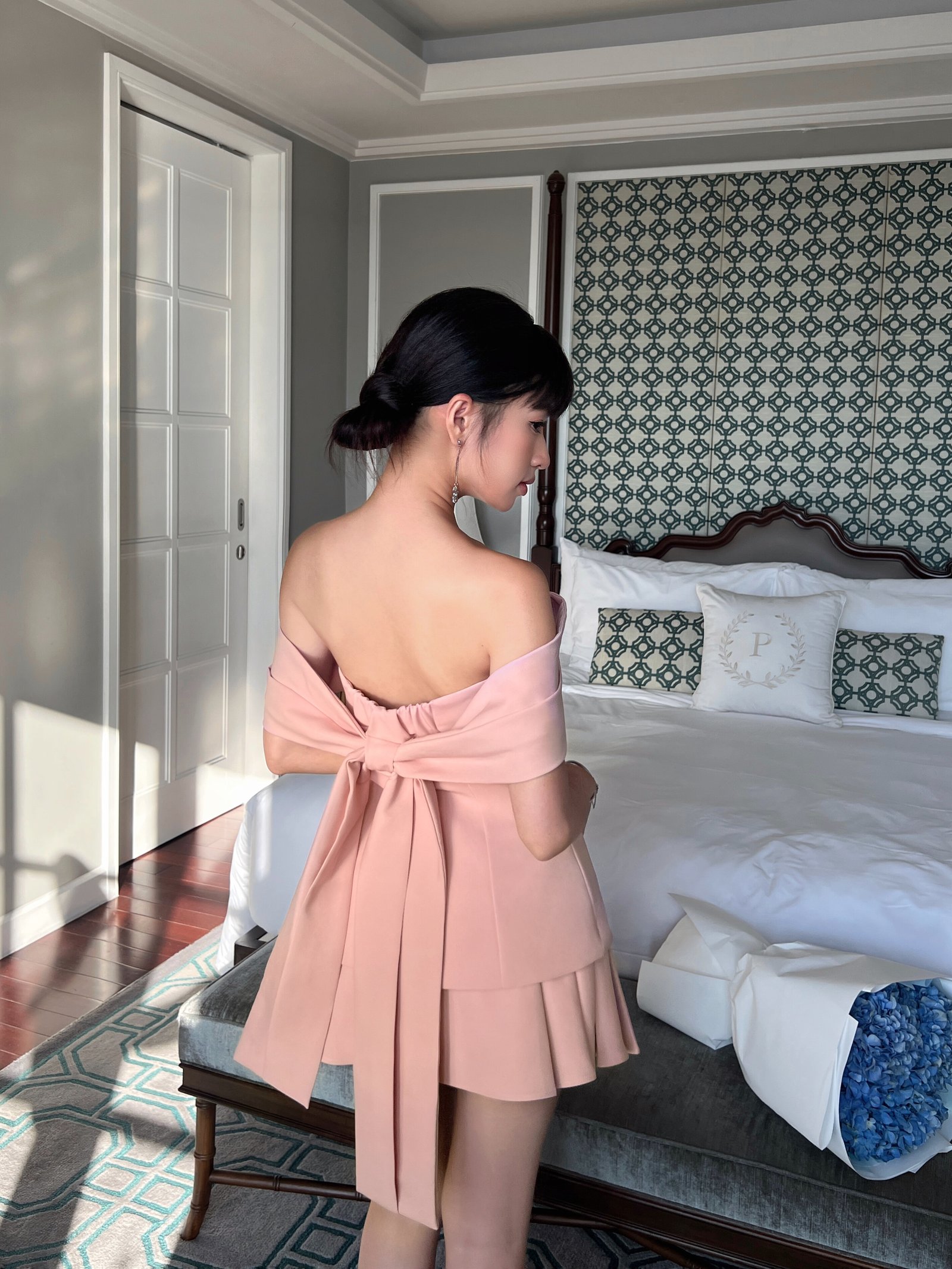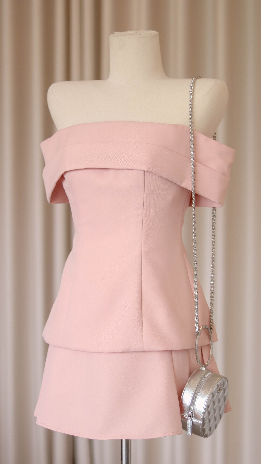 Dottie Skirts Material: Cotton with silk liningAn off-shoulder style top featuring a bow detail at the back. The shoulder drape is adjustable, allowing it to be worn either as an off-shoulder top or as a tube top.